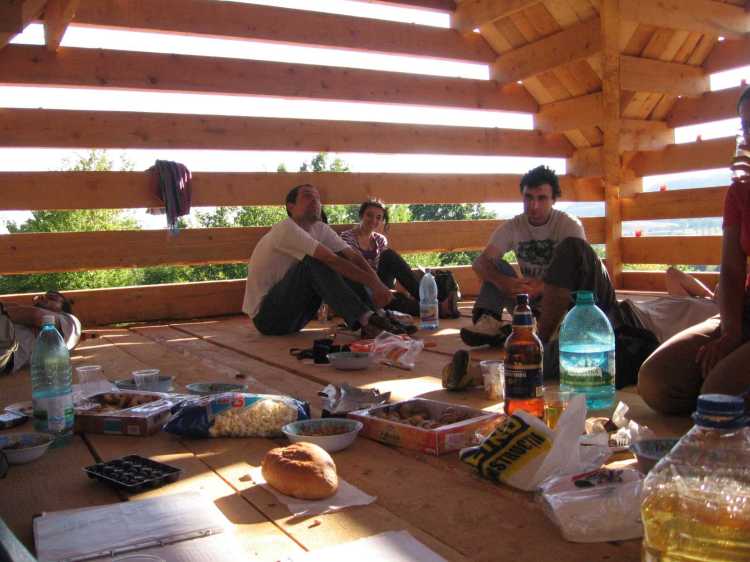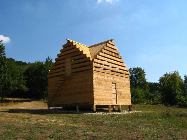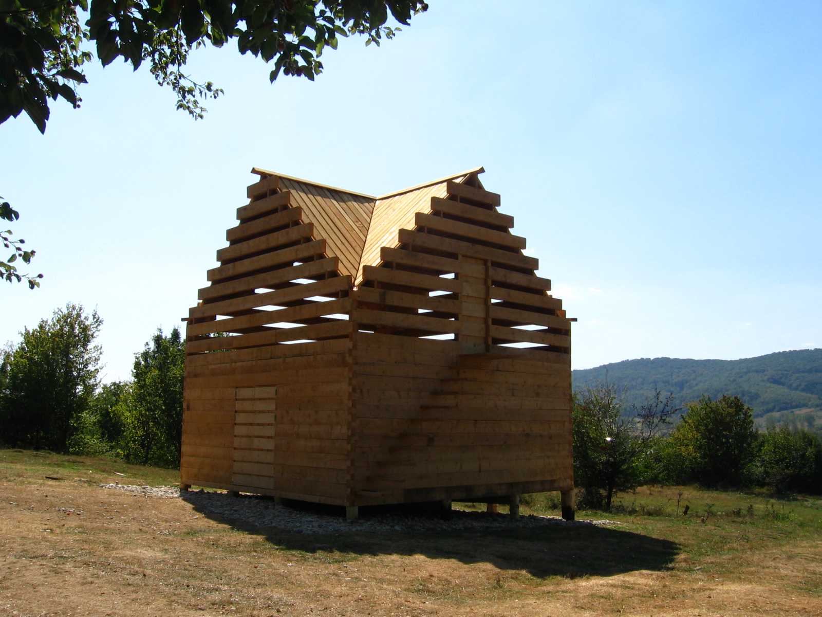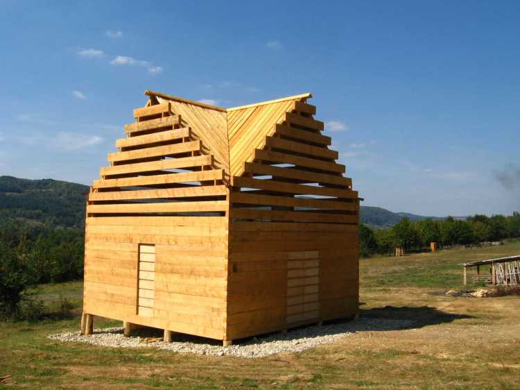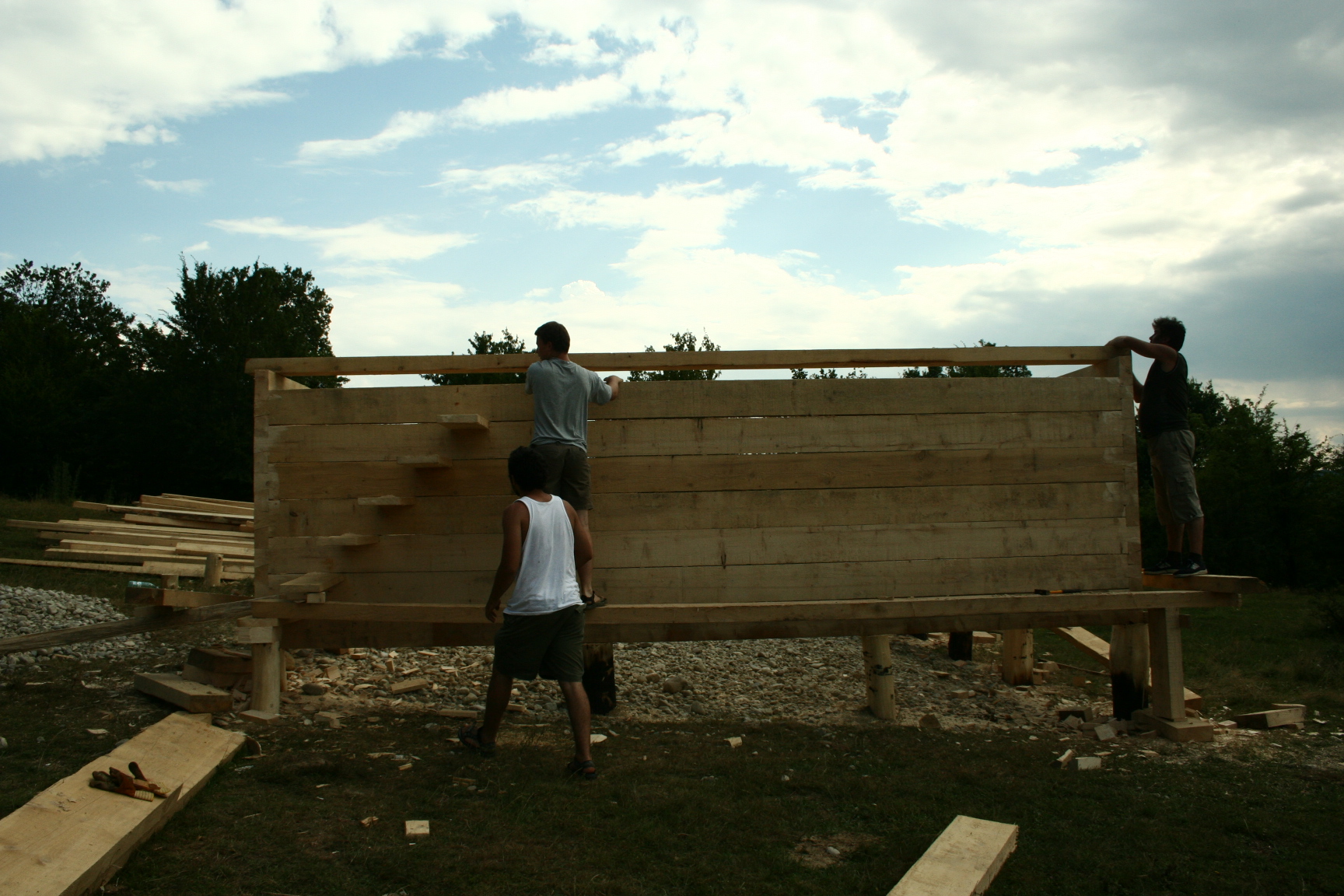 The main feature of the workshop is the interaction with one of the fundamental building materials, wood. The exercise consisted in building a house entirely out of wood. In extenso, as an exercise facing the future Bunesti summer school, was the apprehending of a different way of life inside a strong community, in the middle of nature.