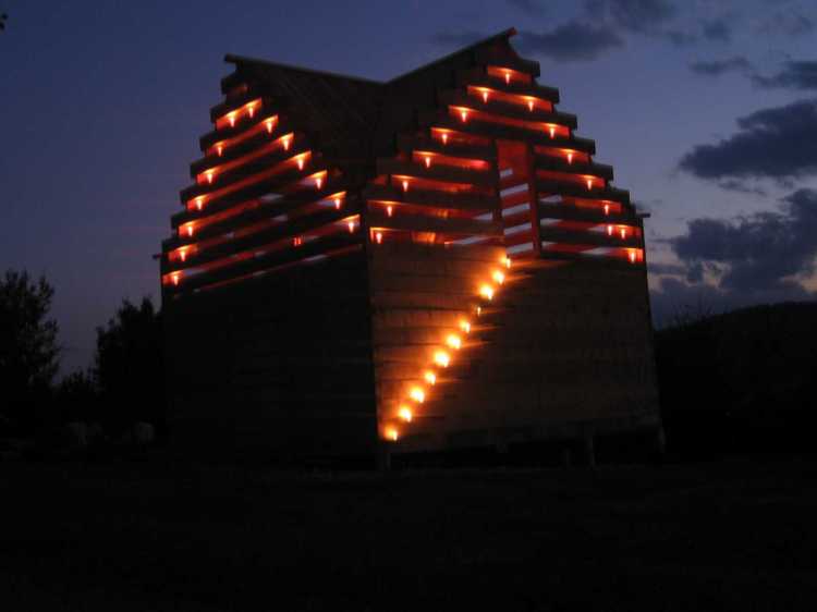 Tema principala a workshop-ului de arhitectura reprezinta interactiunea cu unul din materialele de baza traditionale, lemnul. Aplicatia a fost constructia unei case in intregime din lemn. In extenso, ca si un exercitiu aflat a priori viitoarei scoli de vara de Bunesti, a fost invatarea (re-invatarea) unui mod de viata diferit intr-o comunitate puternica, in mijlocul naturii.