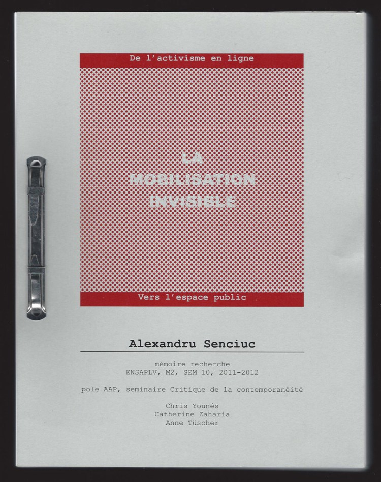 The existing mechanisms of collective deliberation in urban, national, international, global space are in an embryonic state. Inefficient, inaccessible, inexistent, these devices obstruct the functioning of the political systems of democracy. In 2011, the revolution in the Arab world, the 15M movement and the Occupy Wall Street movement, the sphere of online activism (re)entered into the sphere of global public space. The efficiency of its devices shown in the mobilization, organization and collective construction opened a new possible universe, of the invisible mobilization.